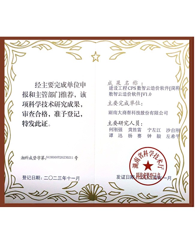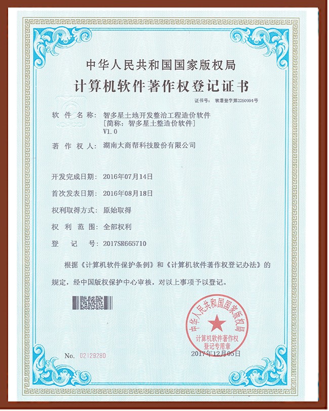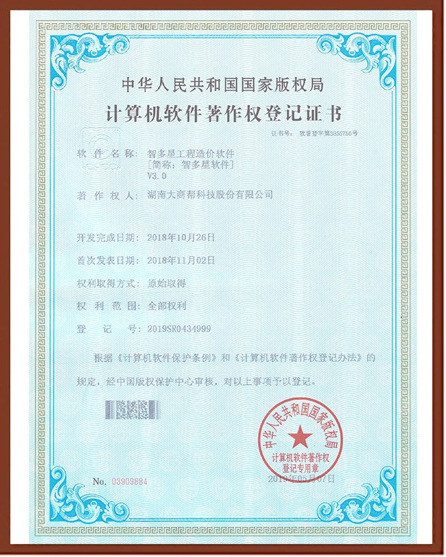 智多星工程造價軟件著作權(quán)