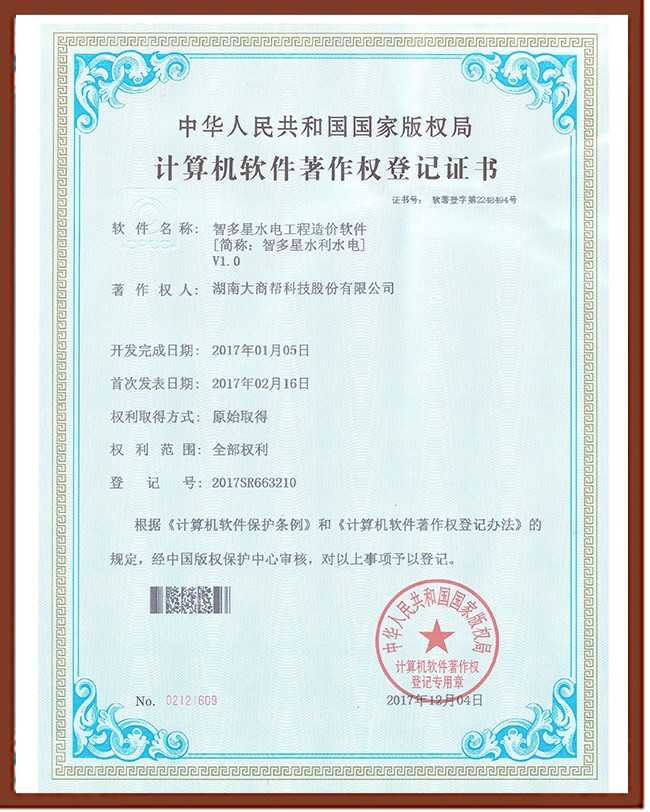 智多星水電工程造價軟件著作權(quán)