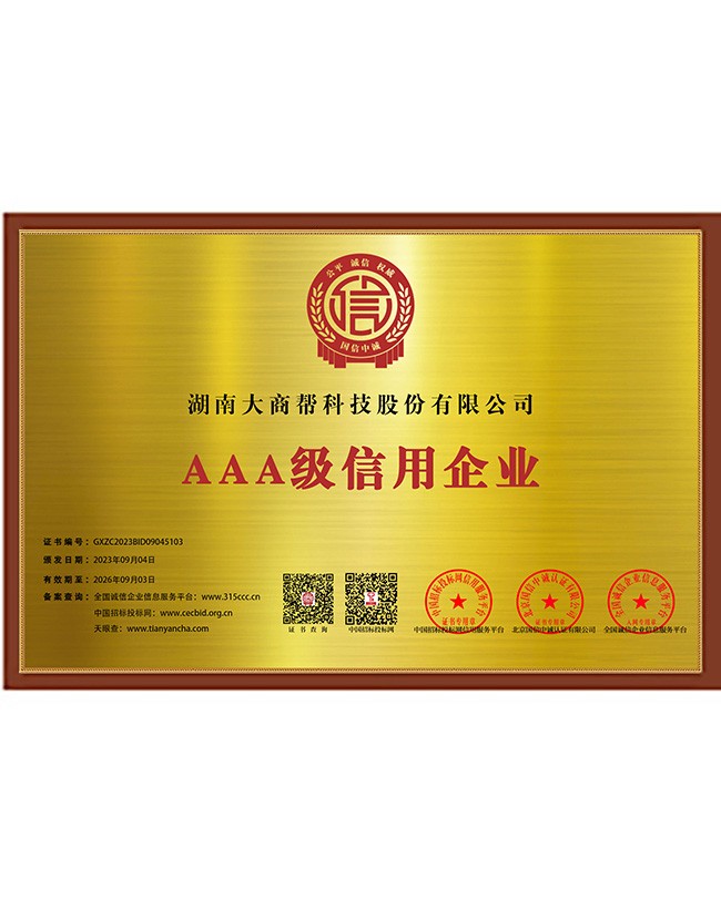 AAA級信用企業(yè)認(rèn)證證書