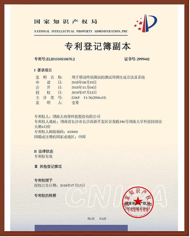 發(fā)明專利證書
