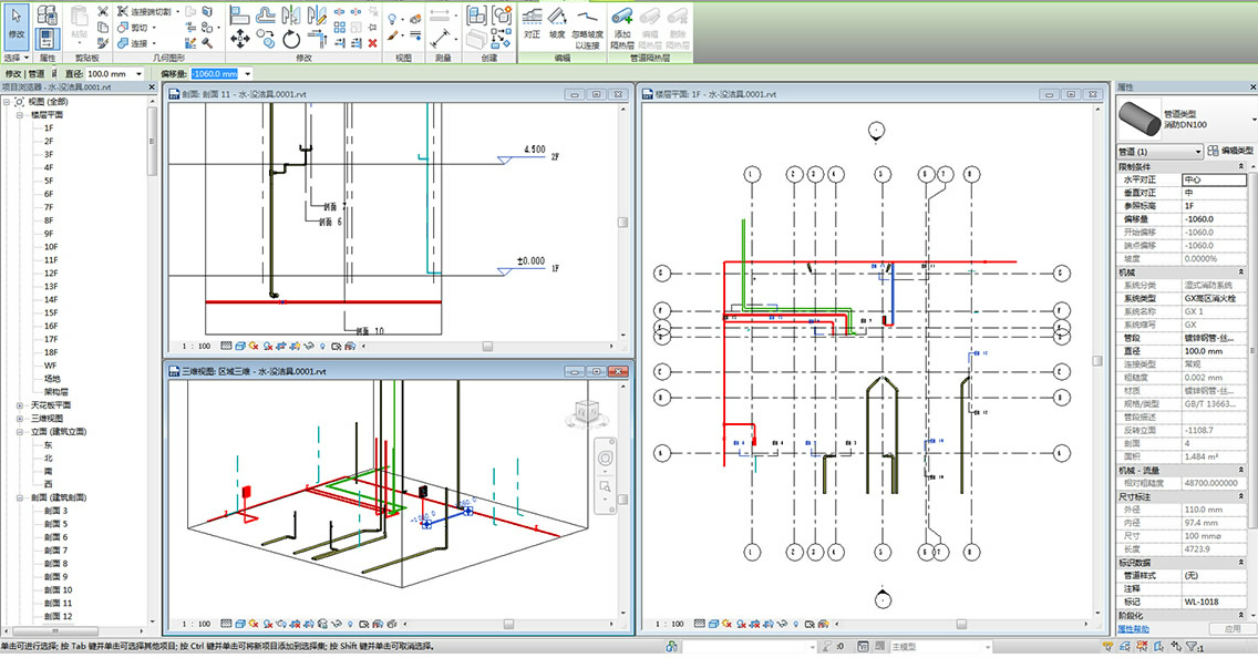 各專業(yè)管線的位置、標高、連接方式及施工工藝先后進行三維模擬,按照現(xiàn)場可能發(fā)生的工作面和碰撞點進行方案的調整,實現(xiàn)方案的可施工性。